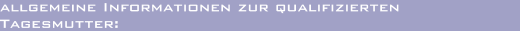 | Um als Tagesmutter/Tagesvater tätig zu sein ist ausserdem eine Pflegeerlaubnis vom Jugendamt notwendig!